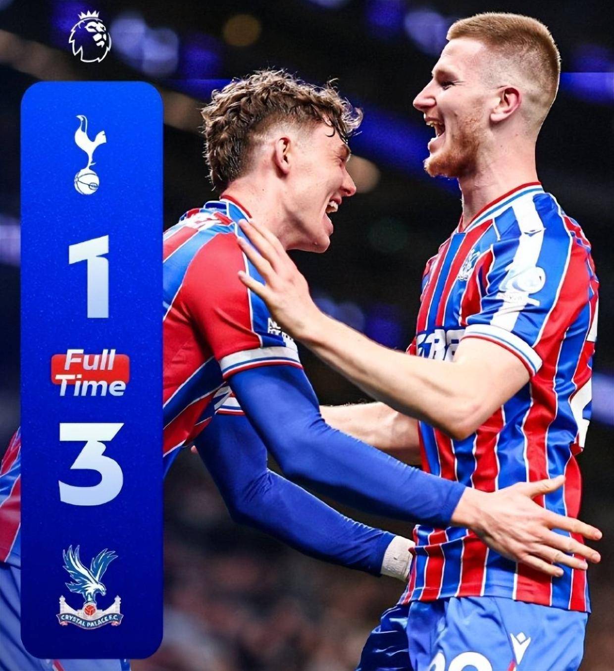 少打一人的热刺彻底乱了阵脚,防守端漏洞百出,水晶宫则抓住机会乘胜追击,在上半场补时阶段完成致命一击。第45+1分钟,水晶宫前场抢断成功,沃顿得球内切后送出直塞,拉尔森禁区内跟进低射,皮球穿裆维卡里奥入网,水晶宫2-1反超比分;仅仅6分钟后,坎沃后场送出精准直塞,沃顿接球后斜传禁区,萨尔反越位成功,面对出击的维卡里奥低射破门,完成梅开二度,比分定格为3-1。